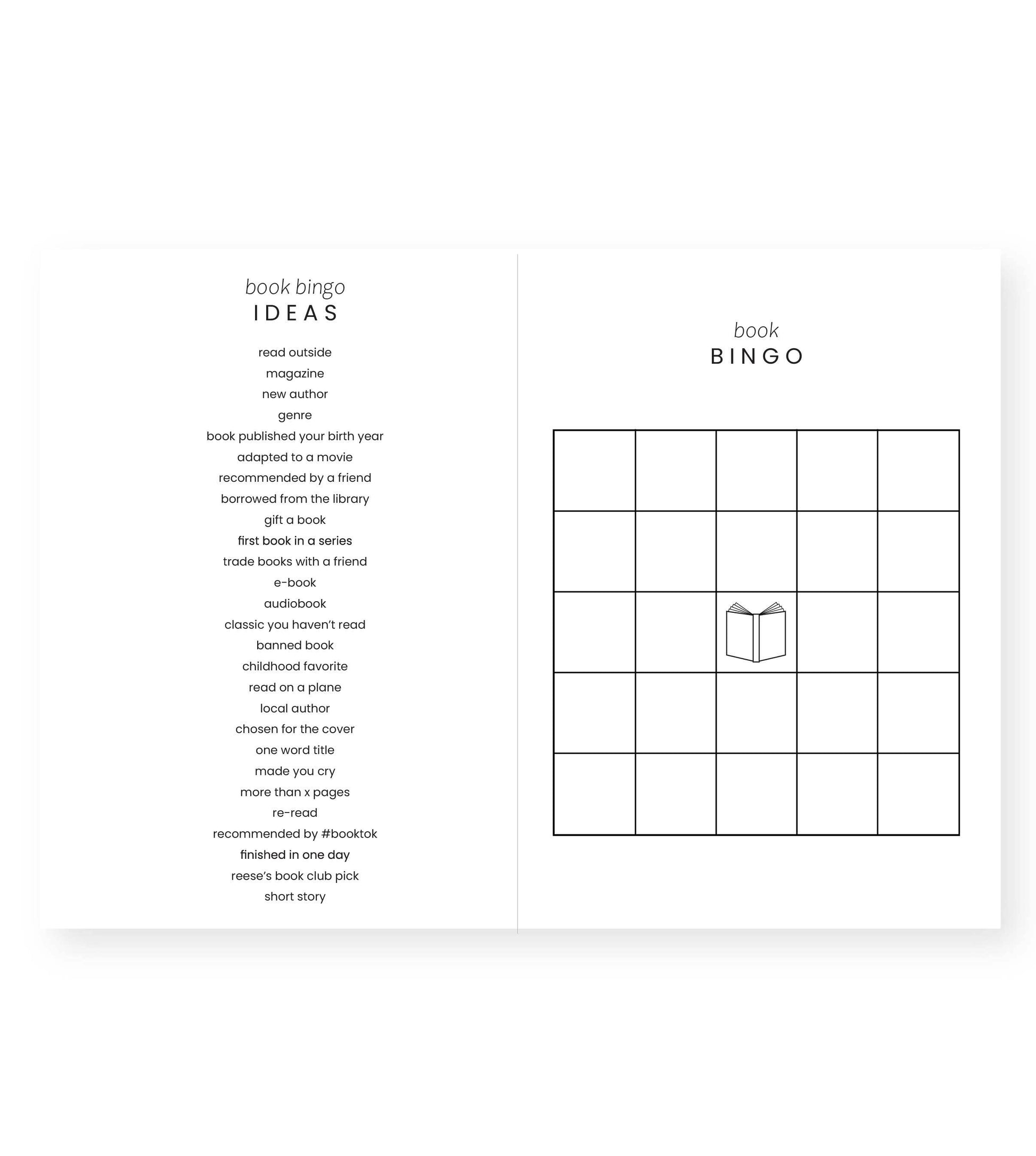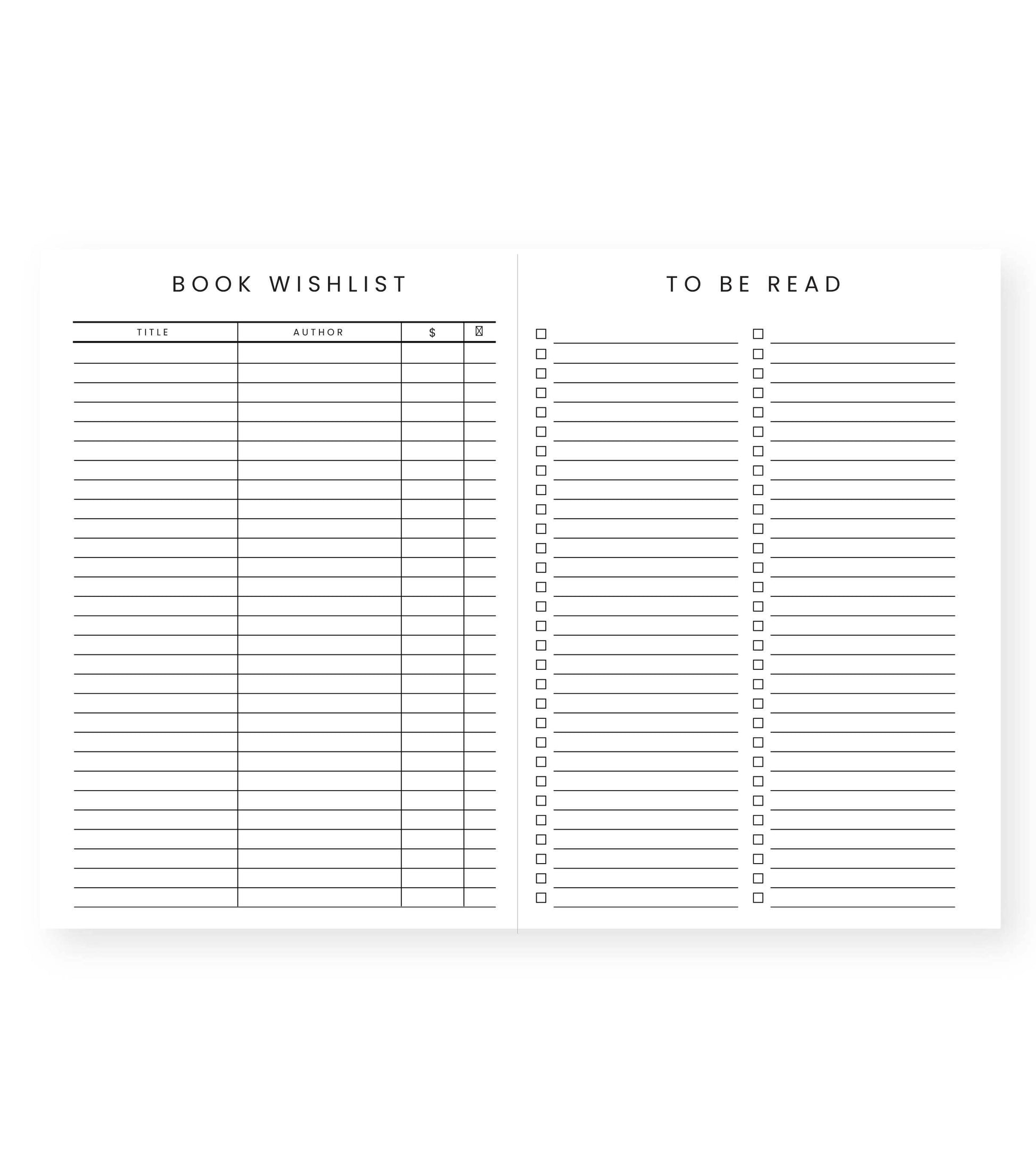 Elevate your reading experience with our brand new Book Journal, a sophisticated companion bound in vegan leather with gold foil embossments and ribbon bookmarks. Featuring 160 gsm paper that lays flat for easy writing, this journal includes reading logs, a fun book bracket, structured book review pages, and additional sections for logging your reading journey.